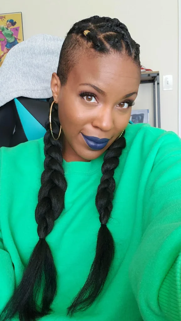 Space buns are playful, fun, and quick to create. You can wear them with natural hair, twists, or braids for an eye-catching look.